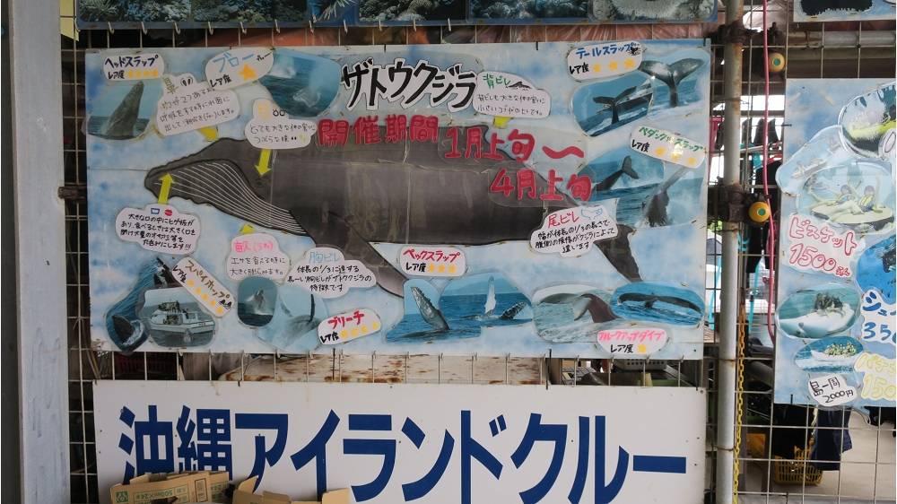 大翅鯨在沖繩主要的繁殖與育幼區在北部的伊江島海域和南部的慶留間群島周遭,伊江島海域賞鯨多從著名的美麗海水族館附近的本部港出海,而慶留間群島賞鯨則可從那霸港,或從小而美的座間味島出發。